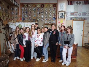 Здобувачі вищої освіти групи Ang1B23 факультету іноземної філології, які навчаються за ОП “Середня освіта (Мова і література (англійська, німецька)” зі своїм куратором, старшим викладачем Світланою Никитюк 15 травня 2025 року у День вишиванки відвідали навчальну лабораторію етнології нашого університету.