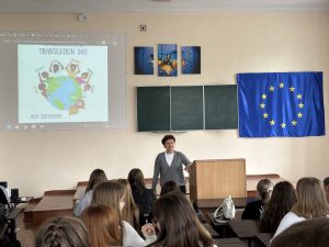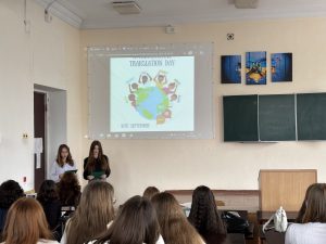 Студенти перших, других і третіх курсів ОП «Англійська мова і література» та ОП «Середня освіта (Мова і зарубіжна література (англійська)» долучилися до заходу приуроченого Міжнародному Дню перекладача. З вітальним словом до присутніх звернулася завідувач кафедри англійської мови, професор Алла Марчишина та ініціатор заходу – доцент Оксана Галайбіда.