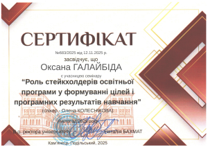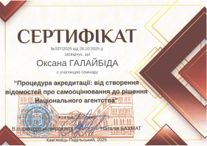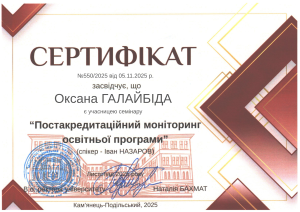 Упродовж жовтня-грудня 2025 року викладачі кафедри англійської мови взяли участь у низці вебінарів у рамках програми підвищення кваліфікації «Акредитація освітніх програм: механізми забезпечення якості вищої освіти в К-ПНУ», проведених експертами Національного агентства із забезпечення якості вищої освіти (НАЗЯВО).