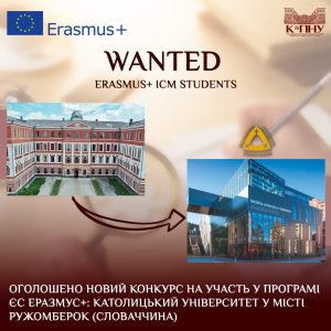 До участі запрошуємо двох студентів спеціальностей 014 Середня освіта (за предметними спеціальностями) та 014.02 Середня освіта (Мова та зарубіжна література (англійська) для навчання впродовж першого семестру 2026–2027 навчального року в Католицькому університеті міста Ружомберок (Словаччина).