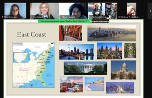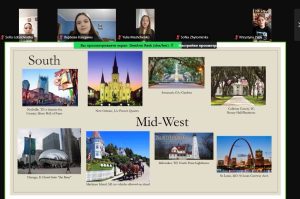 Представниця Peace Corps DeeAnn M. Resk разом зі своєю студенткою провели захопливий екскурс Сполученими Штатами Америки. Учасники засідання ознайомилися з економічним потенціалом, мовною ситуацією та релігійним розмаїттям країни. Особливу увагу приділили географічній панорамі: від Тихоокеанського Північного Заходу до Східного узбережжя, а також історичним віхам та знаковим пам’яткам, що формують американський ландшафт.