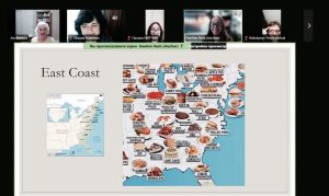 Цього разу зустріч була особливою, адже до нашої постійної гості DeeAnn M. Resk приєдналася її свекруха. Такий сімейний формат зробив атмосферу засідання неймовірно затишною та відкритою. Пані ДіЕнн та її родичка щиро ділилися родинними історіями, демонстрували відеоархіви своїх домашніх традицій та познайомили учасників з іншими членами родини. Особливий акцент було зроблено на регіональних особливостях американської кухні. Учасники мали змогу детально дізнатися про: