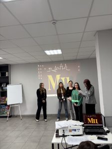 Storytelling challenge: цей раунд став творчим завершенням квізу. Студенти отримали текстові шаблони-заготовки, на основі яких створювали логічне та оригінальне продовження історії, демонструючи навички спонтанного мовлення та знання граматичних структур.